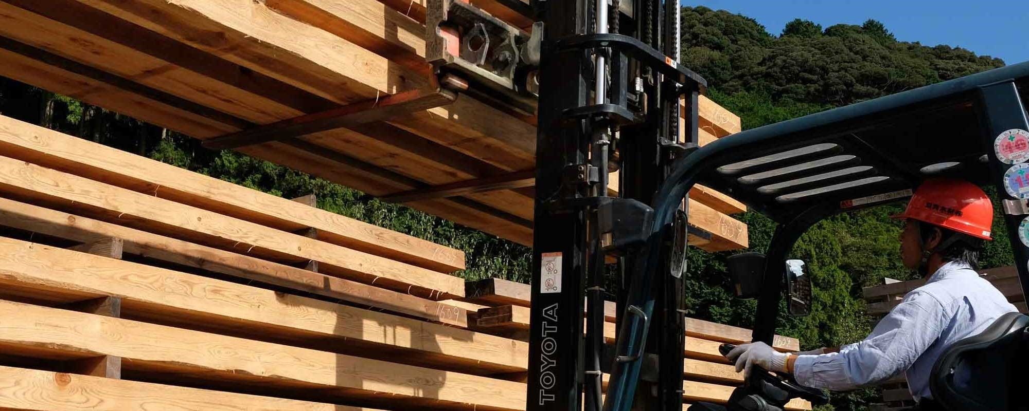 主にテーブルなどの家具材になる広葉樹が保管してあります。
